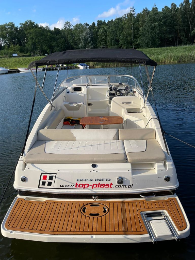 Pływanie Baylinerem wymaga uprawnień. Sterowanie jednostką jest dziecinnie proste dzięki mocnemu skrętnemu silnikowi Mercrusier 4,3 l o mocy 280 KM, oraz mocnemu sterowi strumieniowemu zamontowanemu na dziobie jednostki. Stateczność podczas długi przelotów prze jeziora lub kanały zapewnią specjalne hydro skrzydła zamontowane po lewej i prawej stronie kadłuba. Pod pokładem znajdują się dwa dwuosobowe miejsca do spania .