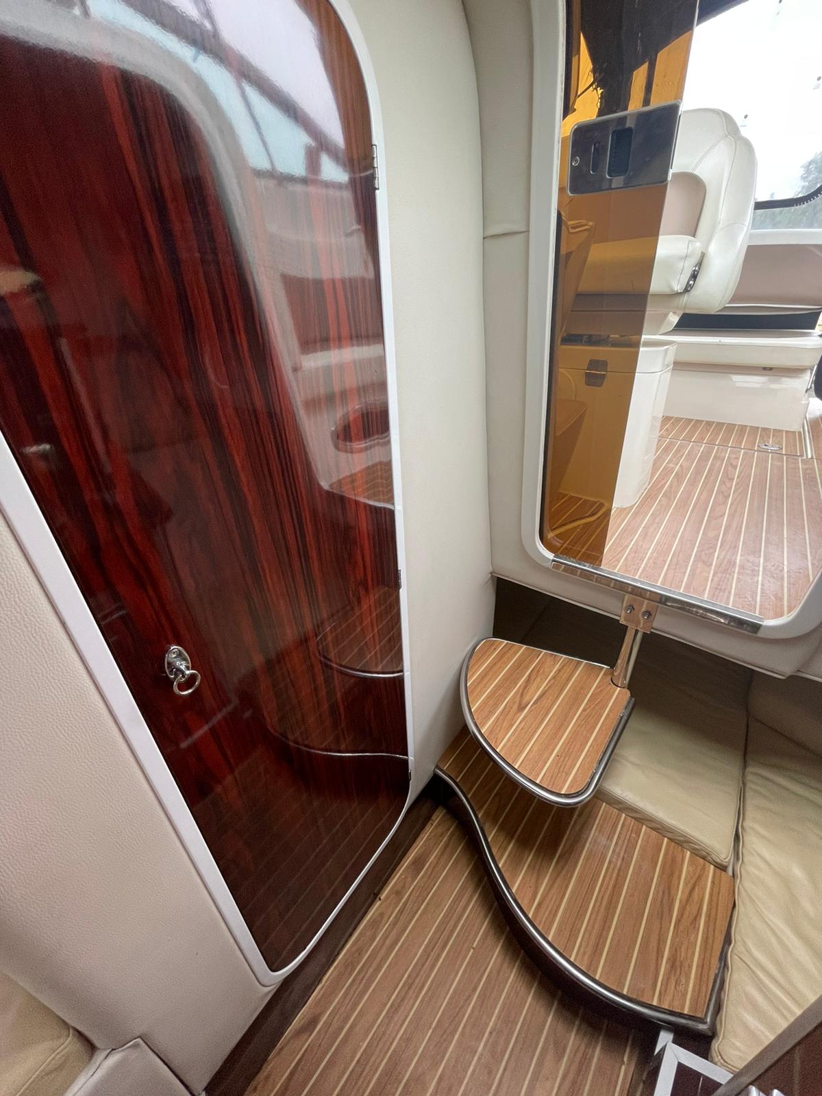 Zarówno motorówka Cobrey 260 SC jak i silnik objęte są ubezpieczeniem. Jacht wyposażony jest w najwyższej jakości środki ratunkowe: koło ratunkowe, kamizelki pokładowe w ilości odpowiadającej liczbie członków załogi oraz gaśnicę. Część mieszkalną motorówki kabinowej Cobrey 260 SC w komfortowych warunkach zamieszkiwać może czteroosobowa załoga. Znajdują się tam dwie dwuosobowe koje; jedna na dziobie, druga na rufie jednostki. Pod każdą z koi znajdują się schowki umożliwiające wygodne rozmieszczenie bagażu. Wewnątrz znajduje się instalacja oświetleniowa LED, system audio z CD i MP3 oraz Telewizor LCD z DVD 19”. Dzięki otwieranym okienkom kabina posiada dobrą wentylację i dostęp do naturalnego oświetlenia. Odpowiednią temperaturę zapewnia wydajne ogrzewanie Webasto. Łazienka wyposażona jest w WC morskie ze zbiornikiem na fekalia, umywalkę, lustro. W kabinie sanitarnej znajdują się również szafki na drobny bagaż oraz wskaźnik stanu zbiornika WC. W kuchni (Kambuzie) zastaną Państwo kuchenkę mikrofalową, instalację wody pitnej z pompką elektryczną i ciepłą wodą, zlewozmywak oraz zestaw naczyń i akcesoriów kuchennych (garnki z pokrywkami, patelnia, talerze głębokie, talerze płaskie, talerze śniadaniowe, sztućce, kubki itp.) Poza standardowym wyposażeniem, do Państwa dyspozycji oddajemy lodówkę Waeco o pojemności 60 l. Jacht Cobrey 260 SC wyposażony jest w prostownik, kabel i przejściówkę na wtyczkę kempingową, co umożliwia samodzielne ładowanie akumulatora w portach. Pod pokładem dodatkowo znajduje się radio z MP3, gniazdka na 12V i 220V (gniazdka 220V działają gdy jacht jest podpięty do ładowania). Przestronny kokpit pozwala na komfortową i bezpieczną żeglugę nawet ośmioosobowej załodze. Relaks możliwy jest dzięki wygodnym siedziskom i rozkładanej pufie przy rufie jachtu. W kokpicie znajdują się punkty świetlne; całość można zadaszyć za pomocą solidnego Bimini. Pulpit sternika wyposażony jest w kierownicę, manetkę do zmiany biegów, panel steru strumieniowego, panel windy kotwicznej, echosondę, gniazdka 12V oraz wskaźniki: prędkości, obrotów, poziomu paliwa, trymu silnika, poziomu naładowania akumulatorów, poziomu oleju, temperatury silnika. Przy pulpicie znajduje się wygodny fotel sternika. Na pokładzie dostępny zestaw akcesoriów przeznaczonych do bezpiecznego cumowania. Solidny osprzęt jak knagi i półkluzy, elektryczna winda kotwiczna z łańcuchem, hak do wygodnego łapania boi, długie cumy oraz wytrzymałe odbijacze. Światła nawigacyjne umożliwiają żeglugę w porze nocnej, a wyjątkową linię kadłuba podkreśla wielopunktowe oświetlenie podwodne. Konstrukcja pozwala na prawdziwe motorowodne szaleństwo w bezpiecznych i komfortowych warunkach. Jacht Cobrey 260 SC idealnie sprawdza się na szlakach Wielkich Jezior Mazurskich.