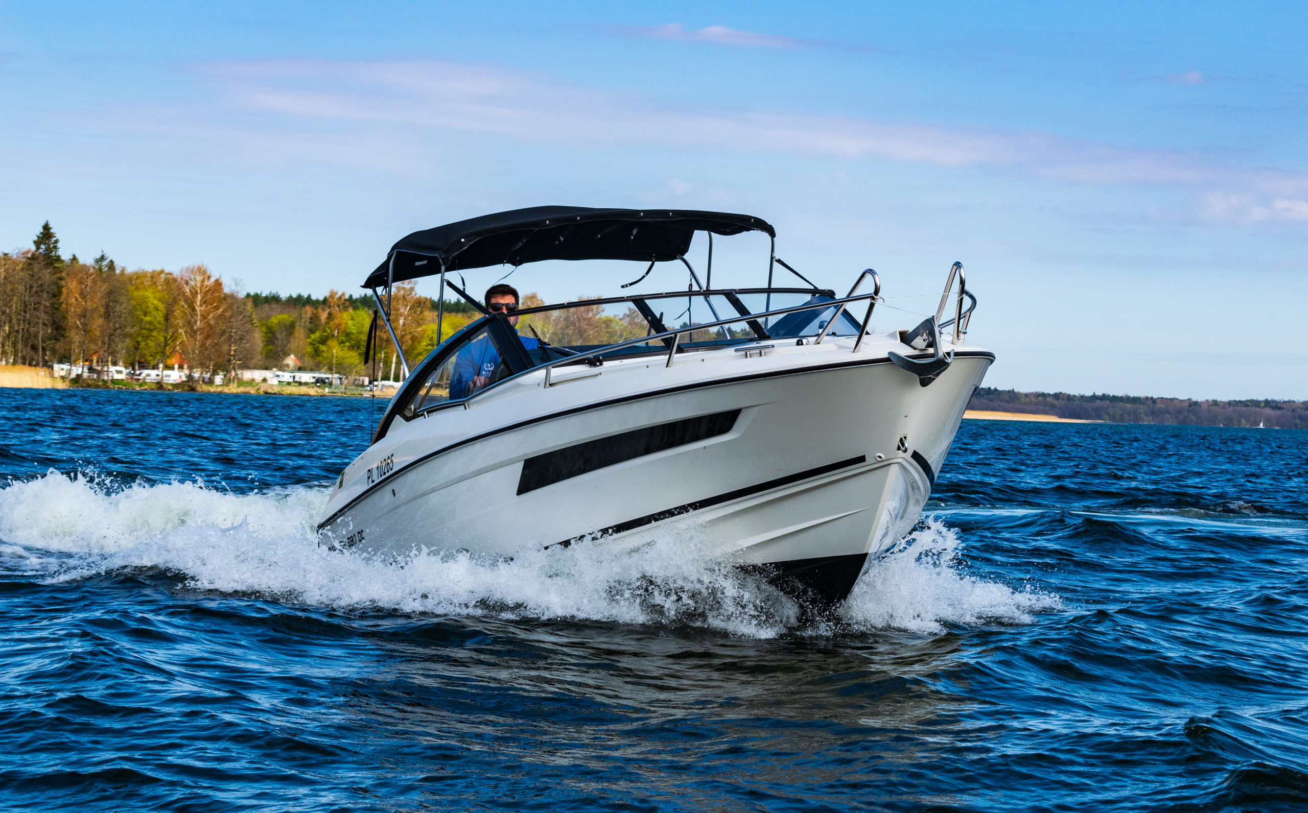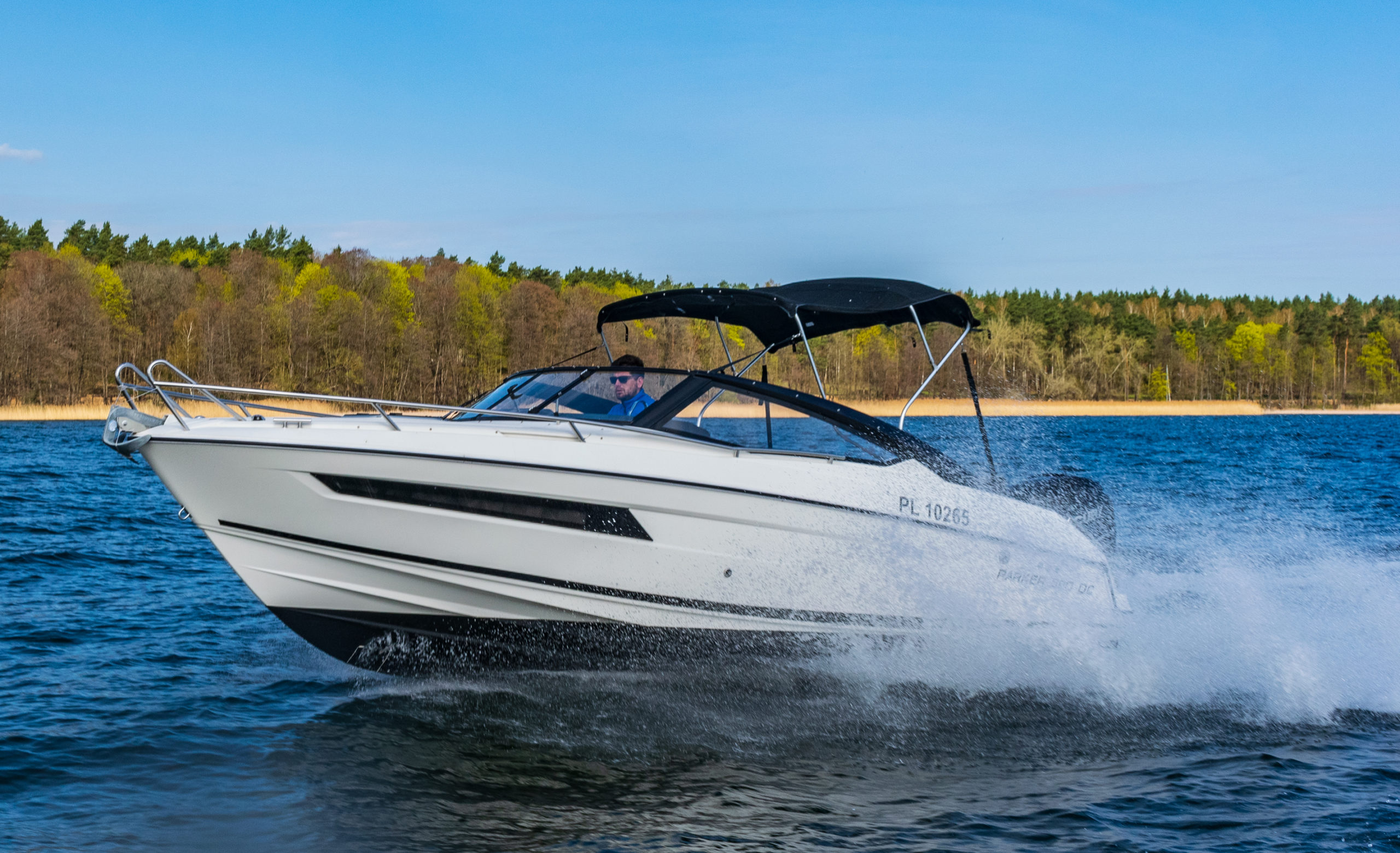 Pływanie Parker 690 DC wymaga uprawnień. Sterowanie jednostką jest bardzo proste dzięki mocnemu skrętnemu silnikowi zaburtowemu Mercury o mocy 250 KM, oraz mocnemu sterowi strumieniowemu zamontowanemu na dziobie jednostki.